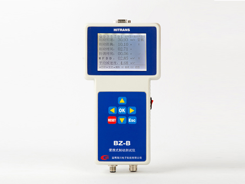 便携式制动测试仪专门用于测量车辆的制动性能、加速性能。可检测充分发出的平均减速度(MFDD)、制动协调时间、制动初速度、制动距离、制动时间、制动过程中的平均减速度等数据。该仪器采用进口高精度传感器,测量数据精确,其性能可与国外同类产品相媲美,符合国家标准GB7258-2017《机动车运行安全技术条件》、GB21861-2014《机动车安全技术检验项目和方法》中路试检验制动性能要求。该仪器已在机动车检测站、农机监理站、特检所、高等院所、部队等单位和部门广泛使用,并予以一致好评。