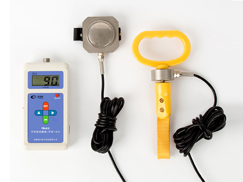 汽车制动踏板(手刹)力计是用来测量汽车制动踏板力和驻车制动操纵力的精密检测仪器;仪器由手持式主机和传感器两部分构成,采用四位段码液晶显示,读数直观。